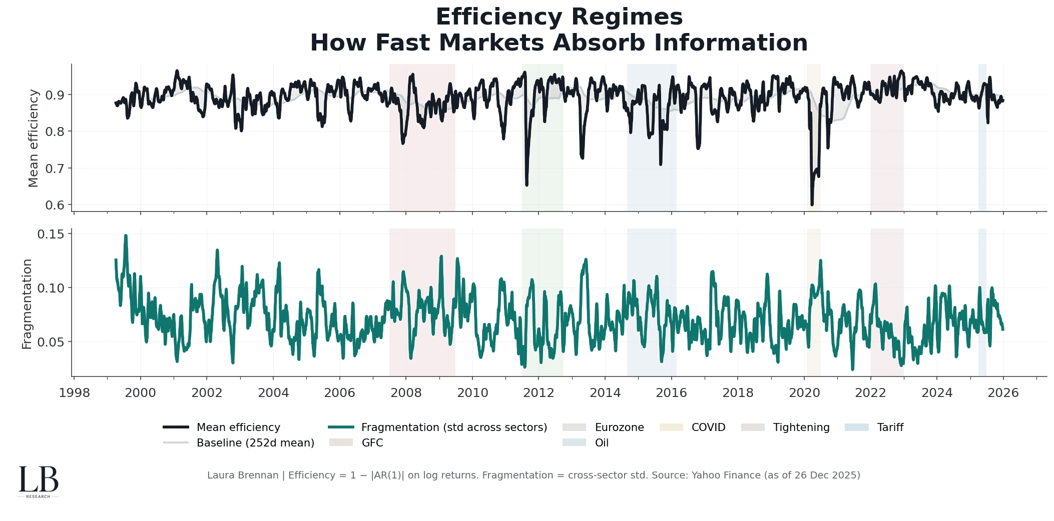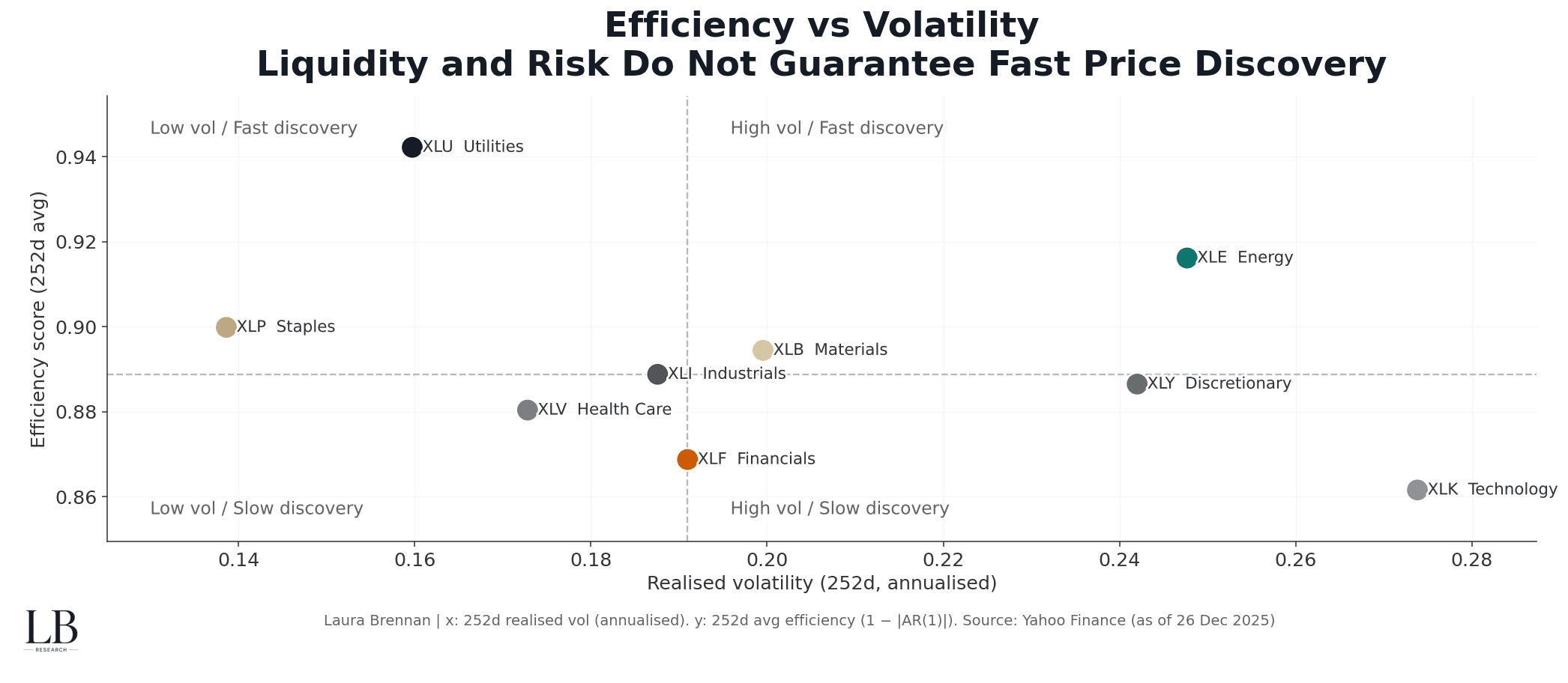 This Insight measures how quickly sector ETFs incorporate information, and how that speed shifts across cycles.