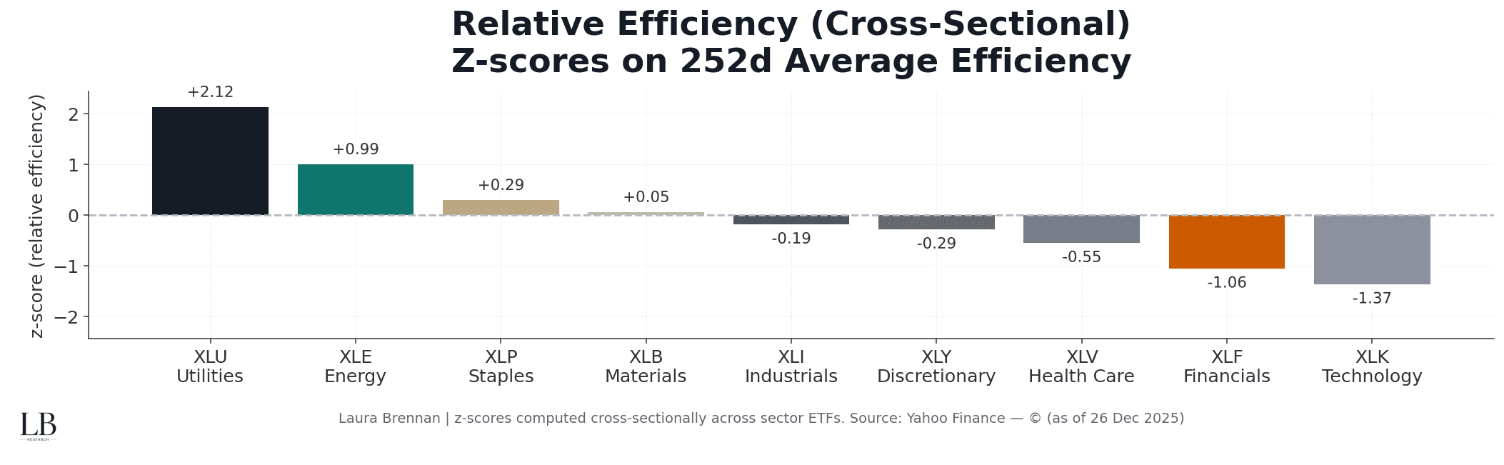 It highlights which sectors are meaningfully above or below the cross-sectional norm.