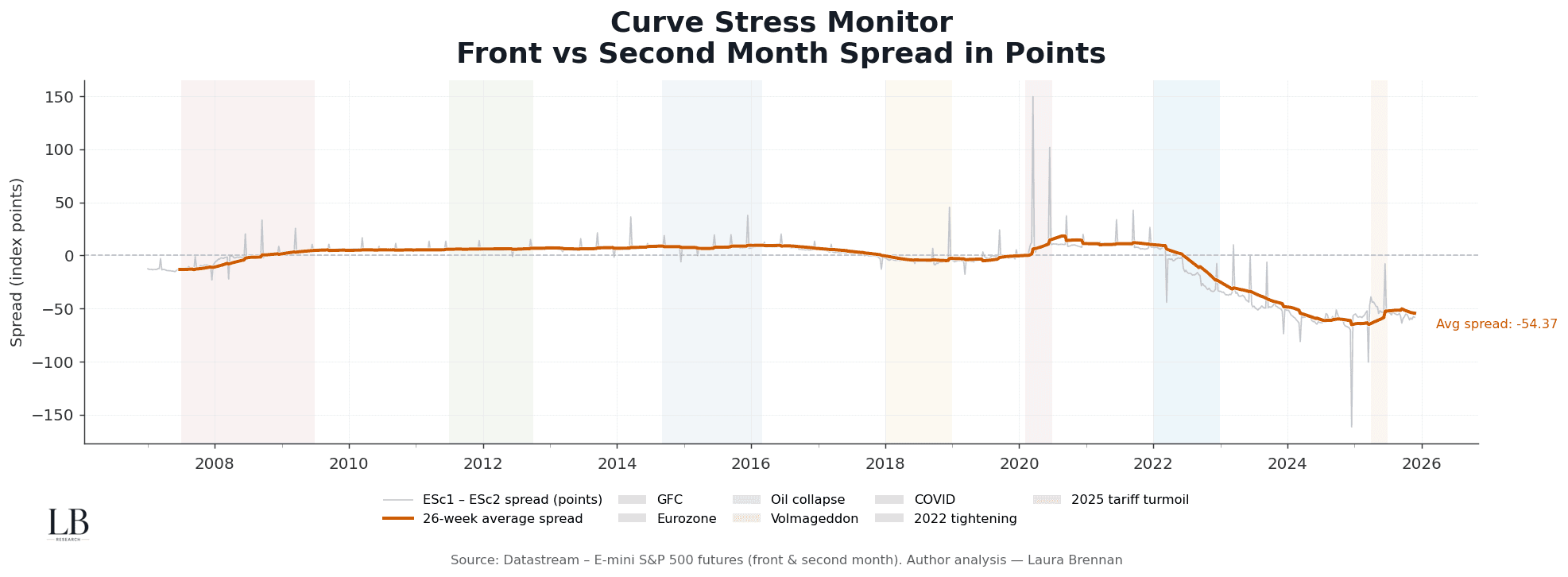 Together, they form a structural read of market fragility that sits beneath sentiment, headlines, and realised volatility.