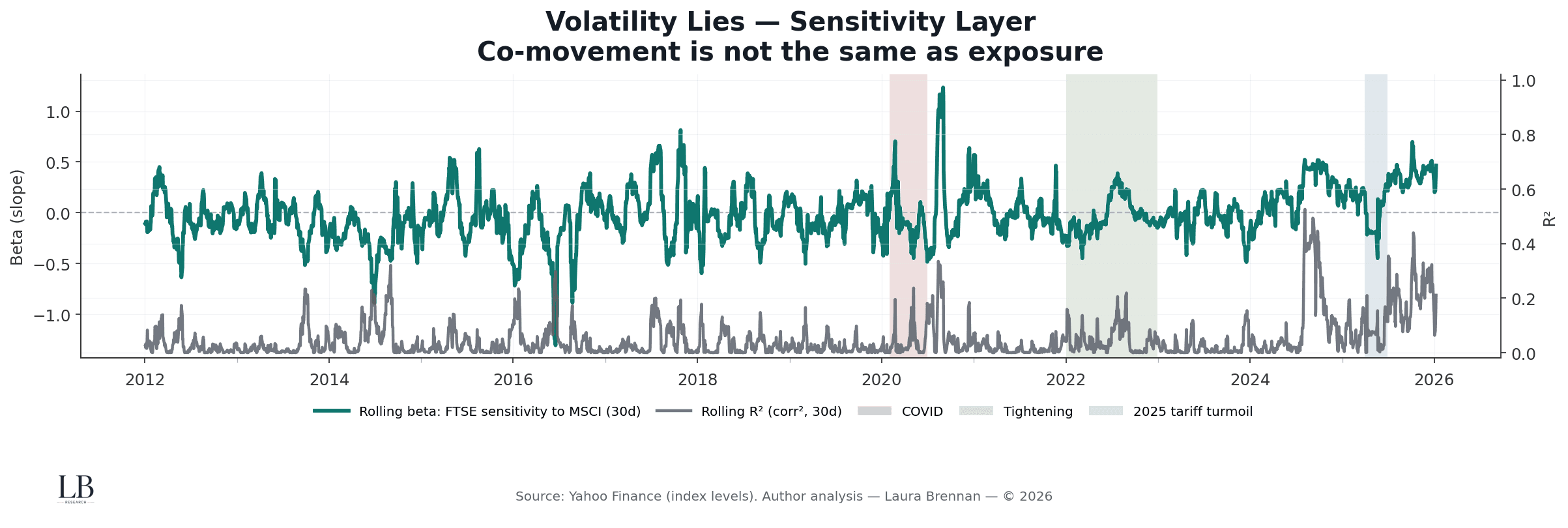 This chart separates co-movement from exposure.