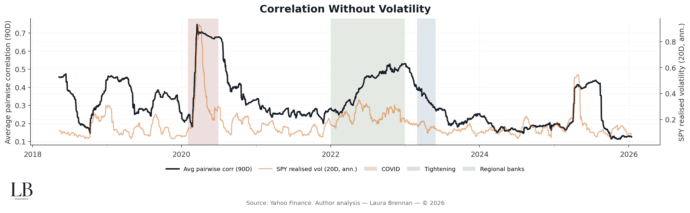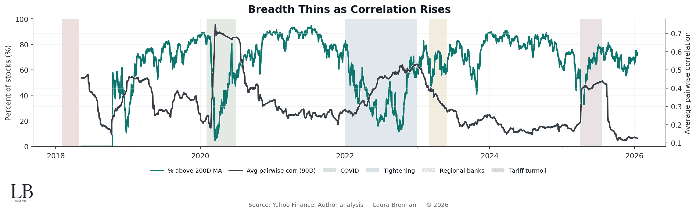 This Insight examines how market fragility can build quietly beneath the surface, showing why rising correlation, thinning breadth, and collapsing differentiation often precede visible stress.