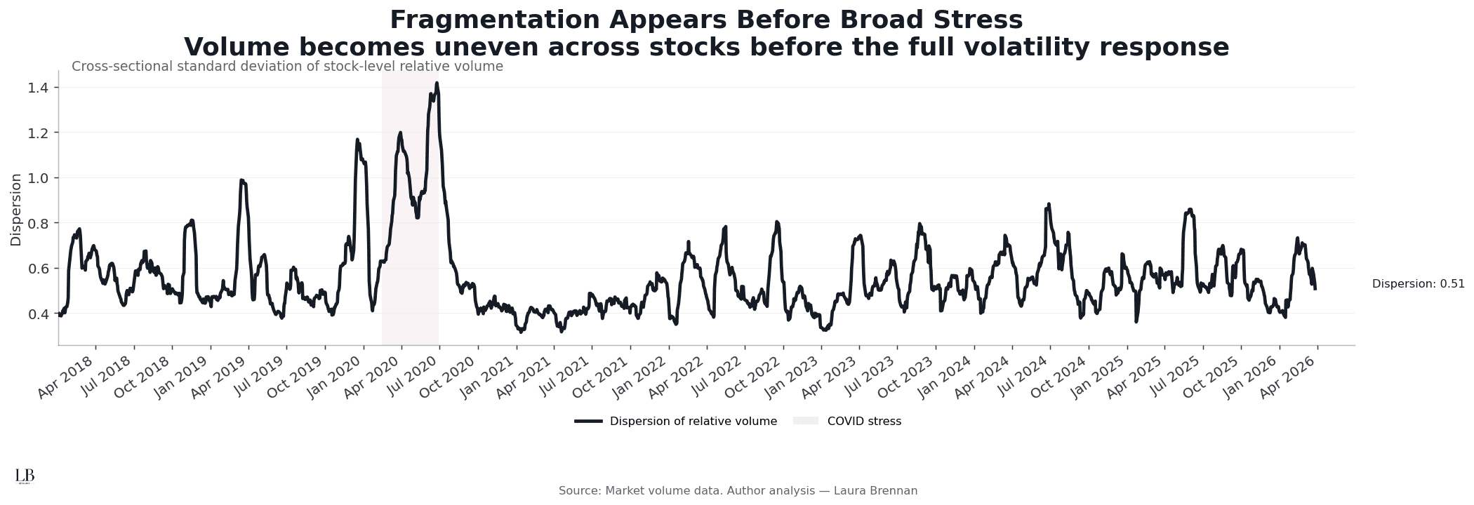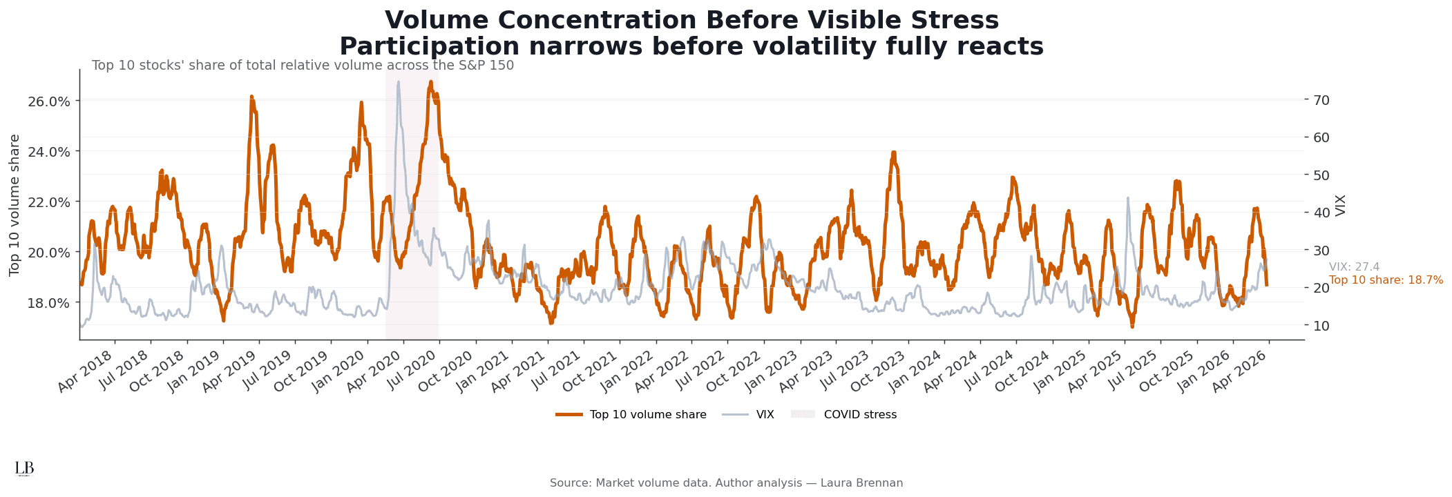 The share of activity captured by a small group of stocks increases before volatility fully reacts.