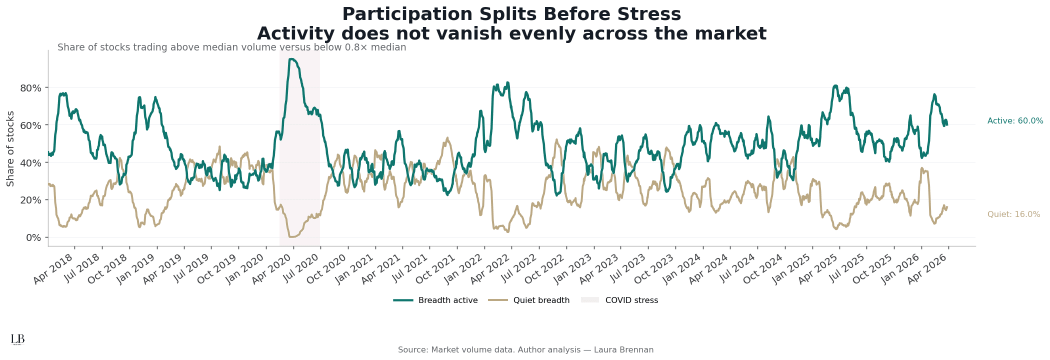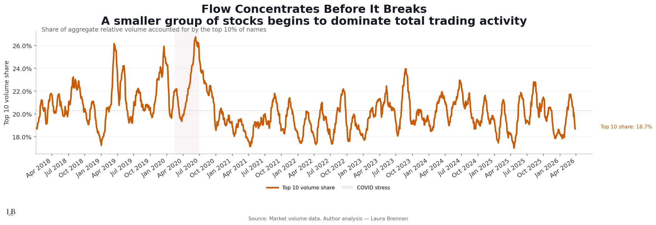 Participation narrows, with fewer names accounting for a larger portion of total flow.