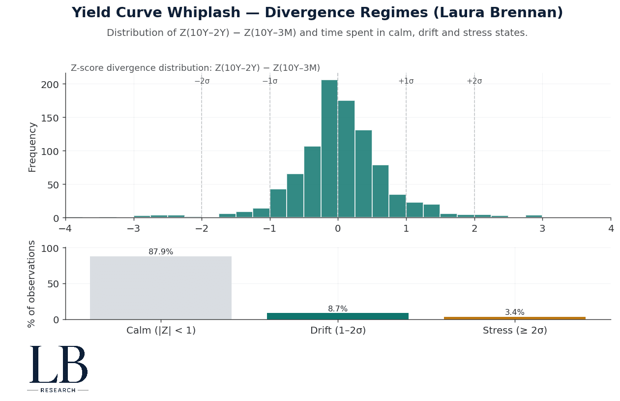 A structural read on term-structure drift and z-score divergence across stress regimes.